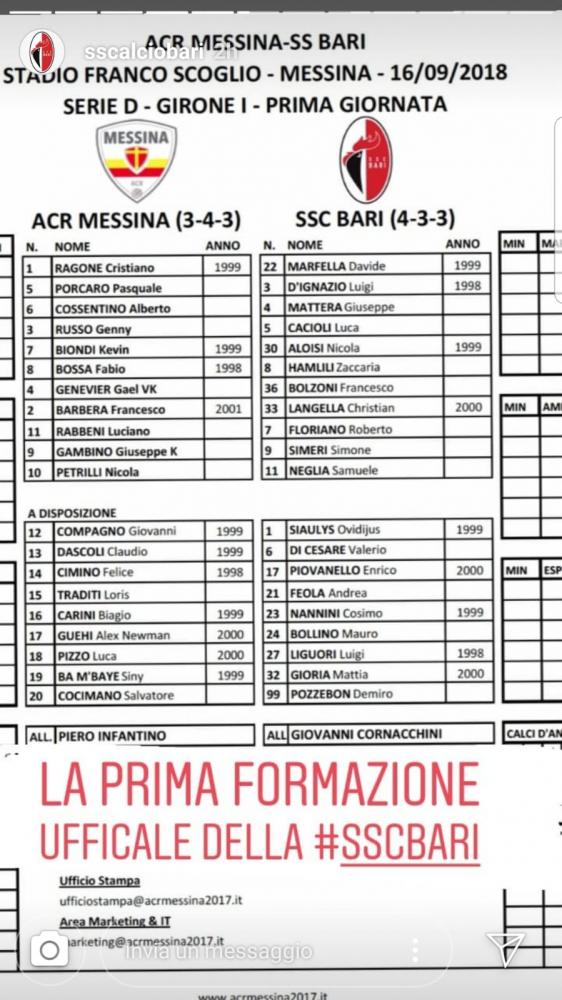 Il Bari di Aurelio De Laurentiis fa il suo esordio in Serie D. In campo c’è anche un po’ di Napoli con i due azzurri in prestito titolari: il classe 99 Marfella e il 98 D’Ignazio.