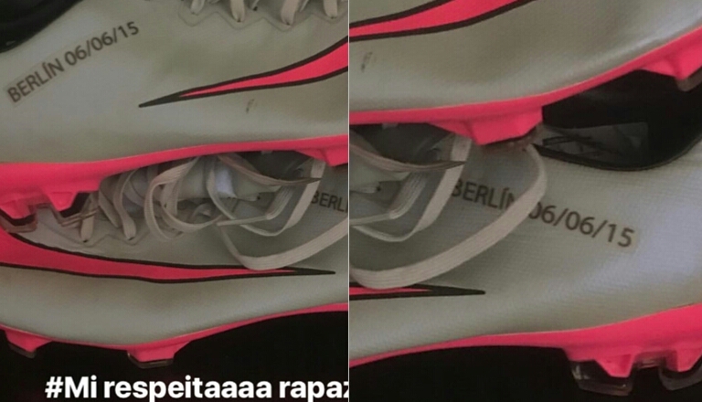 Dani Alves, ancora lui, dopo le polemiche scaturite per le frasi su Dybala (“dovrebbe lasciare la Juventus“) e alla figuraccia sui palloni d’oro di Maradona (a cui è seguita l’umiliante  risposta della figlia Dalma), il brasiliano riesce a trovare un nuovo il modo per far arrabbiare i tifosi juventini. L’esterno bianconero e della nazionale verdeoro, che si sta rilassando in vacanza in Brasile con tutta la sua famiglia, pubblica infatti, tra le pieghe di un’innocente Instagram Stories, un’immagine delle scarpe indossate niente meno che durante la finale di Champions League del 2015 a Berlino, vinta con la maglia del Barcellona proprio contro la Juventus per 3-1. Lo si capisce chiaramente dalla scritta impressa sugli scarpini mostrati da Dani Alves. Una sottile provocazione social o semplicemente un ricordo doloroso per i sostenitori della Juve. Ecco la foto: