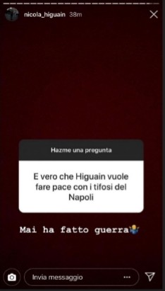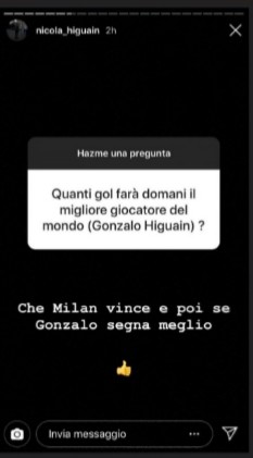 Nicolas Higuain risponde ai tifosi del Napoli su Instagram. Dopo la prima domanda   su una possibile pace tra Gonzalo e i tifosi, il fratello-agente dell’attaccante argentino si è espresso anche sul match di domani sera allo stadio San Paolo: “Quanti goal farà domani? Che vinca il Milan, se segna Gonzalo è meglio”. Poi anche la risposta a un epiteto: “Lota? Grazie”.