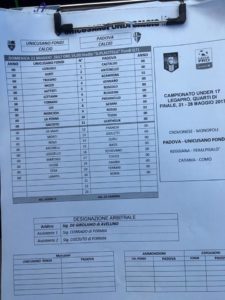Under 17 Lega Pro- Al “Placitelli” sono scese in campo questo pomeriggio Fondi e Padova per disputare la gara d’andata dei Quarti di Finale play off.