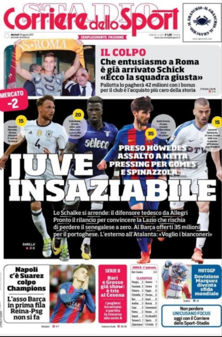 Così titola in prima pagina il Corriere dello Sport:
