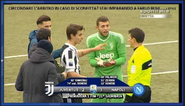 Vittoria importante per il Napoli primavera che ha avuto la meglio sulla Juventus per 3-2 al termine di una partita spettacolare. Tante le proteste dei bianconeri a fine gara dal momento che l’arbitro ha fischiato la fine della gara senza dare la possibilità ai padroni di casa di calciare un corner e si è subito scatenata l’ironia del web: “Circondare l’arbitro in caso di sconfitta? Stai imparando a farlo bene…”