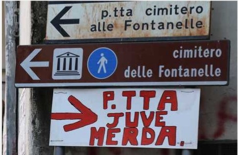 Forse anche per questo nel cuore del Rione Sanità, a opera di alcuni sfegatati supporter del Napoli, uno slargo di via Fontanelle, lì dove c’è un torrione medievale, è nata «Piazzetta Juve merda», con tanto di cartelli indicativi fai da te, capace di richiamare turisti con tanto di macchina fotografica.