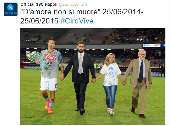 La Ssc Napoli ricorda Ciro Esposito ad un anno dalla sua morte attraverso il suo profilo twitter.
