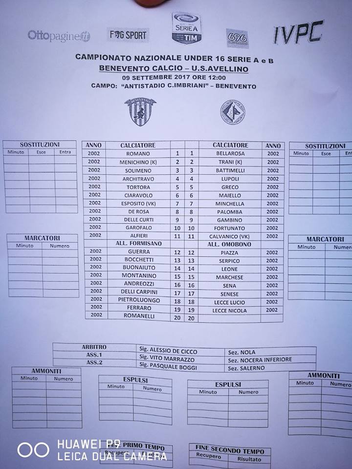 Questa mattina alle ore 09.30 presso l’Antistadio “Carmelo Imbriani” di Benevento i giallorossi padroni di casa allenati da Giuseppe Fusaro hanno affrontato i pari età 2003 dell’Avellino di mister Giuseppe Bevilacqua in occasione della 1°g. del Campionato Under 15 A e B.