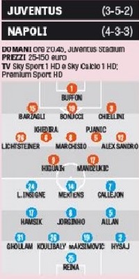 Il grafico con le probabili formazioni di Juventus-Napoli