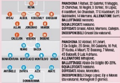 Il grafico che anticipa le probabili formazioni di Napoli-Milan