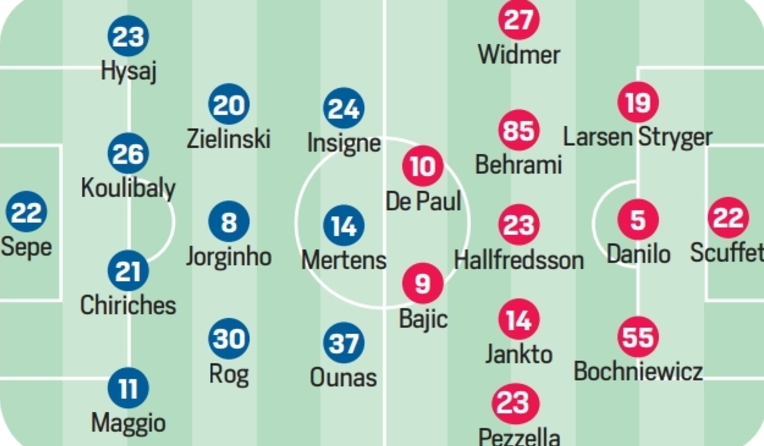 NAPOLI (4-3-3): Sepe; Maggio, Chiriches, Koulibaly, Hysaj; Rog, Jorginho, Zielinski; Ounas, Mertens, Insigne. All. Sarri.