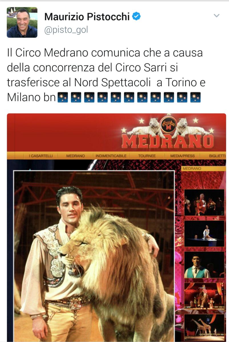 Un’ironia quasi napoletana quella di Maurizio Pistocchi che risponde alle parole di Allegri (“lo spettacolo va bene al Circo, nel calcio contano i risultati”) con un tweet che la dice lunga: “Il Circo Medrano comunica che a causa della concorrenza del Circo Sarri si trasferisce al Nord. Spettacoli a Torino e Milano”