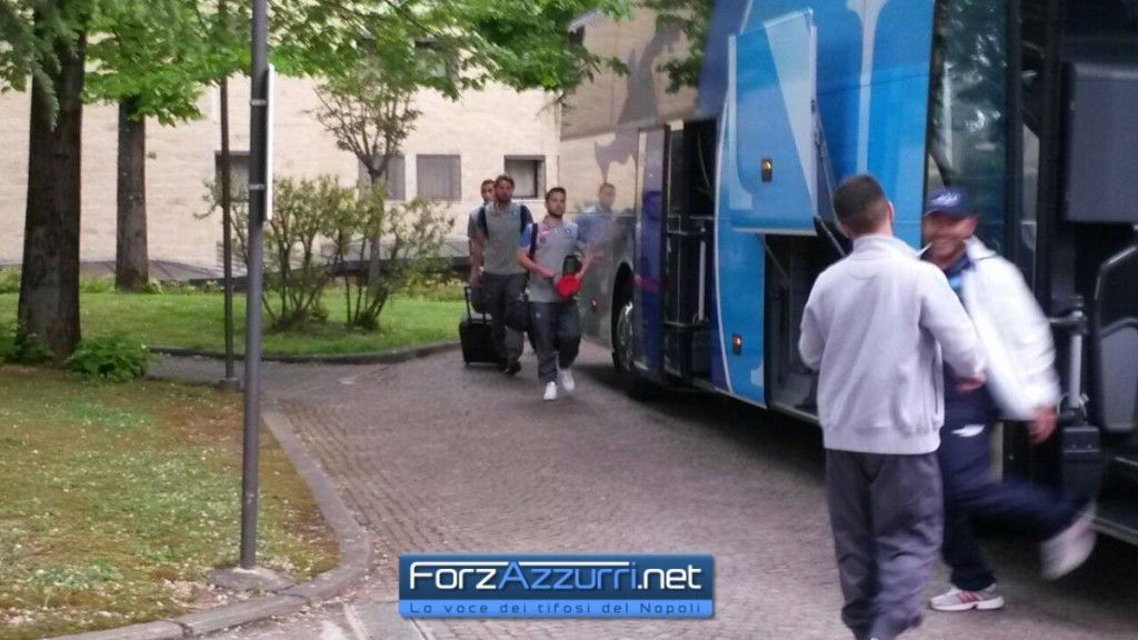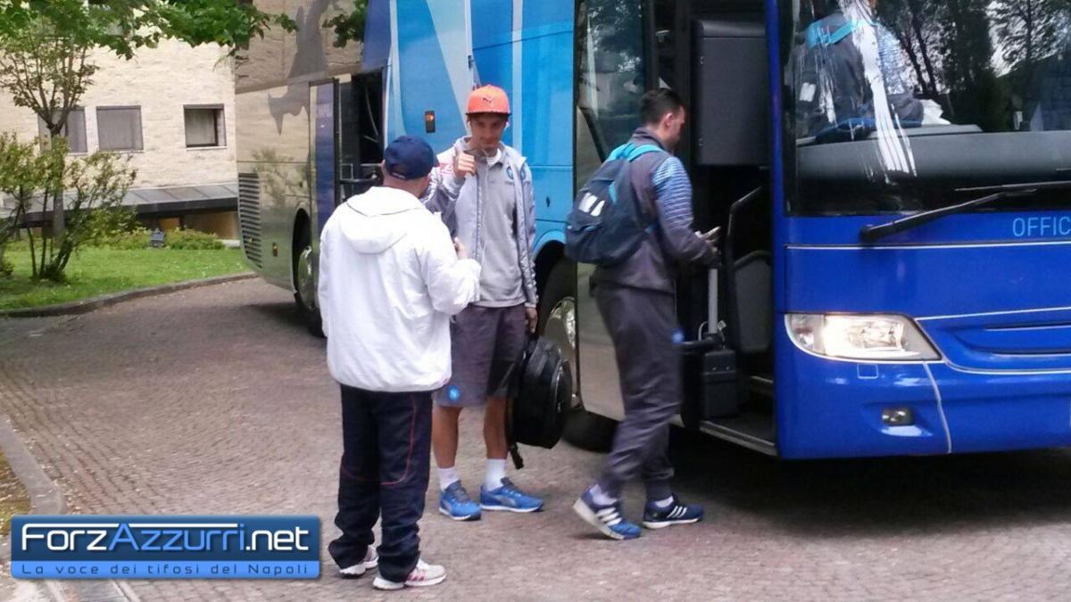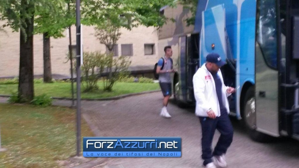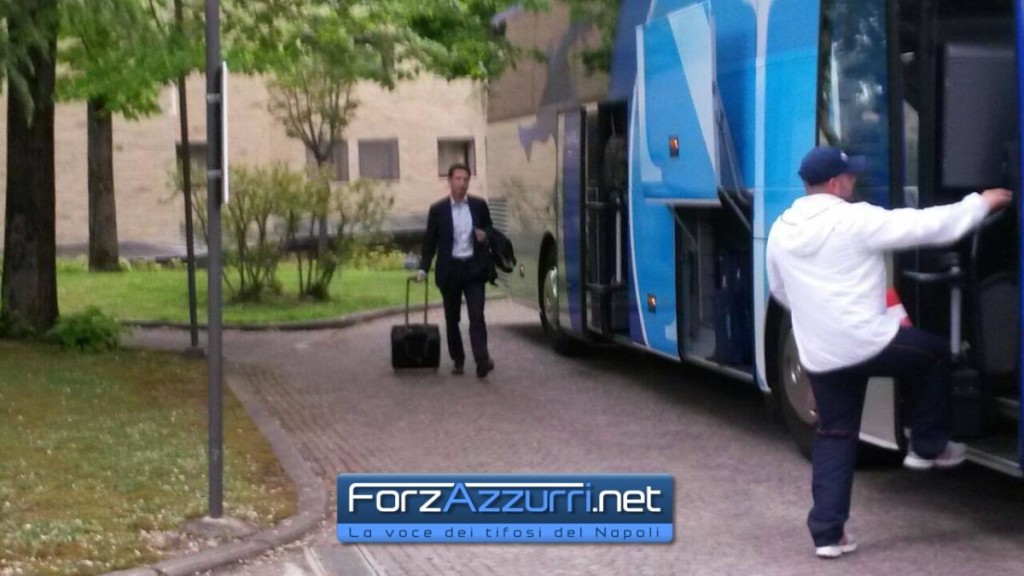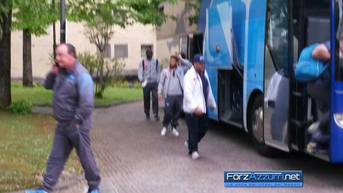 Questi scatti, inviati da un nostro lettore, ritraggono Benitez, Bigon e alcuni calciatori del Napoli che si accingono a lasciare Coverciano in autobus. Dopo la partita giocata ieri sera contro l’Empoli, infatti, la squadra ha pernottato al centro sportivo di Coverciano.
