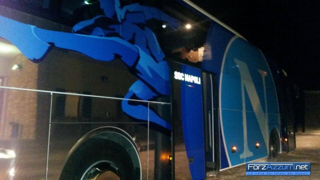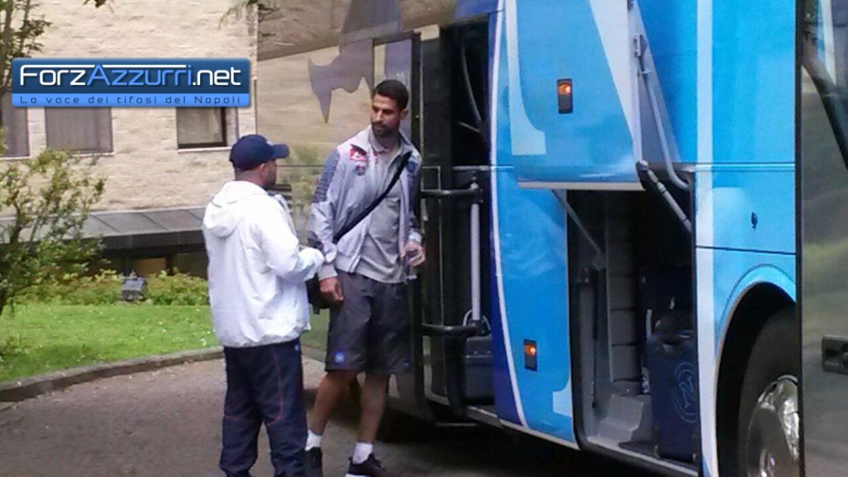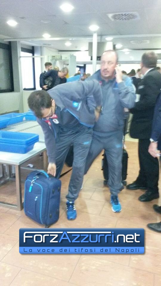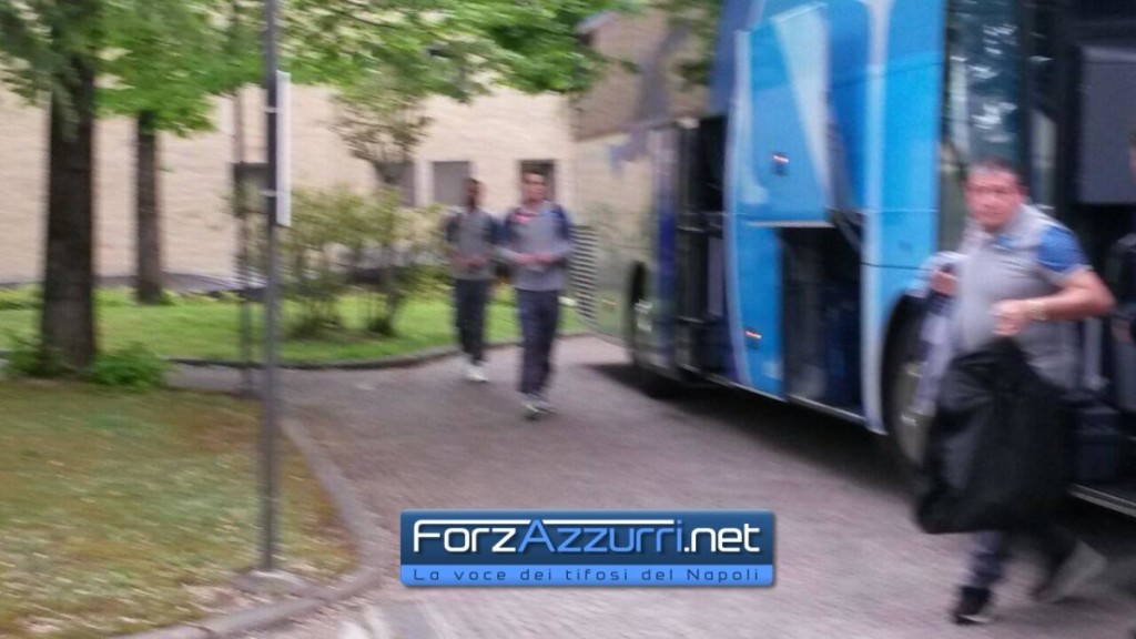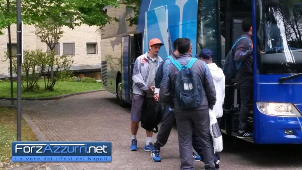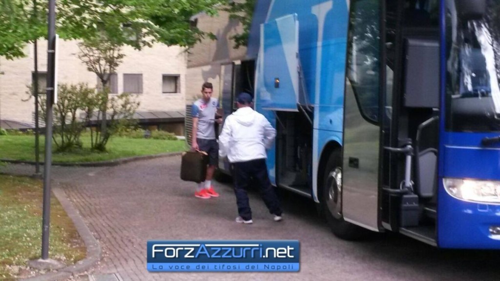 Questi scatti, inviati da un nostro lettore, ritraggono Benitez, Bigon e alcuni calciatori del Napoli che si accingono a lasciare Coverciano in autobus. Dopo la partita giocata ieri sera contro l’Empoli, infatti, la squadra ha pernottato al centro sportivo di Coverciano.