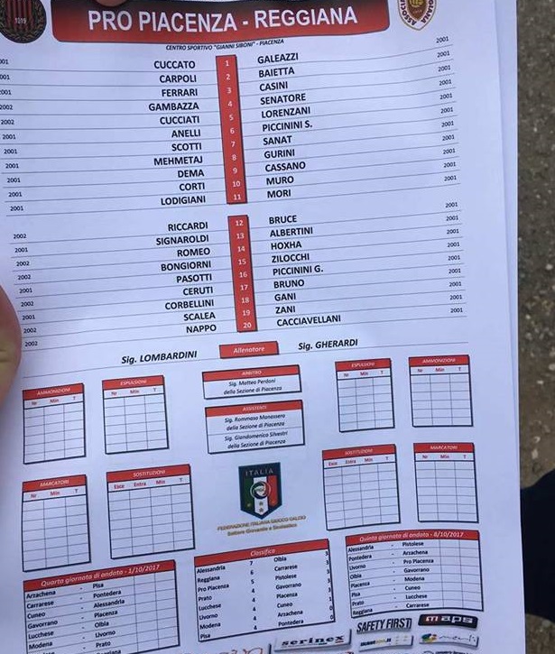 Pro Piacenza- Ieri pomeriggio gli emiliani hanno affrontato la Reggiana nel doppio confronto valido per le categorie Under 17 e Under 15 Serie C.