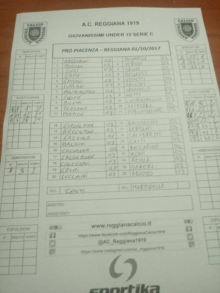 La Reggiana Under 17 di mister Gherardi batte anche la Pro Piacenza nel match valido per la 4°g. del campionato U17 Serie C e vola in classifica al primo posto con 9 punti anche se Cuneo (7pt.) e Olbia (6pt.) hanno rispettivamente da recuperare una e due gare.