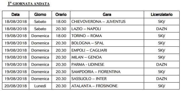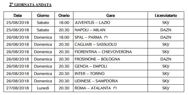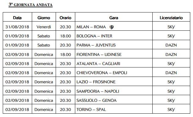 Di seguito anche la divisione relativa ai match in tv: in ogni turno sette partite verranno trasmesse da Sky, mentre 3 andranno in onda su Dazn.